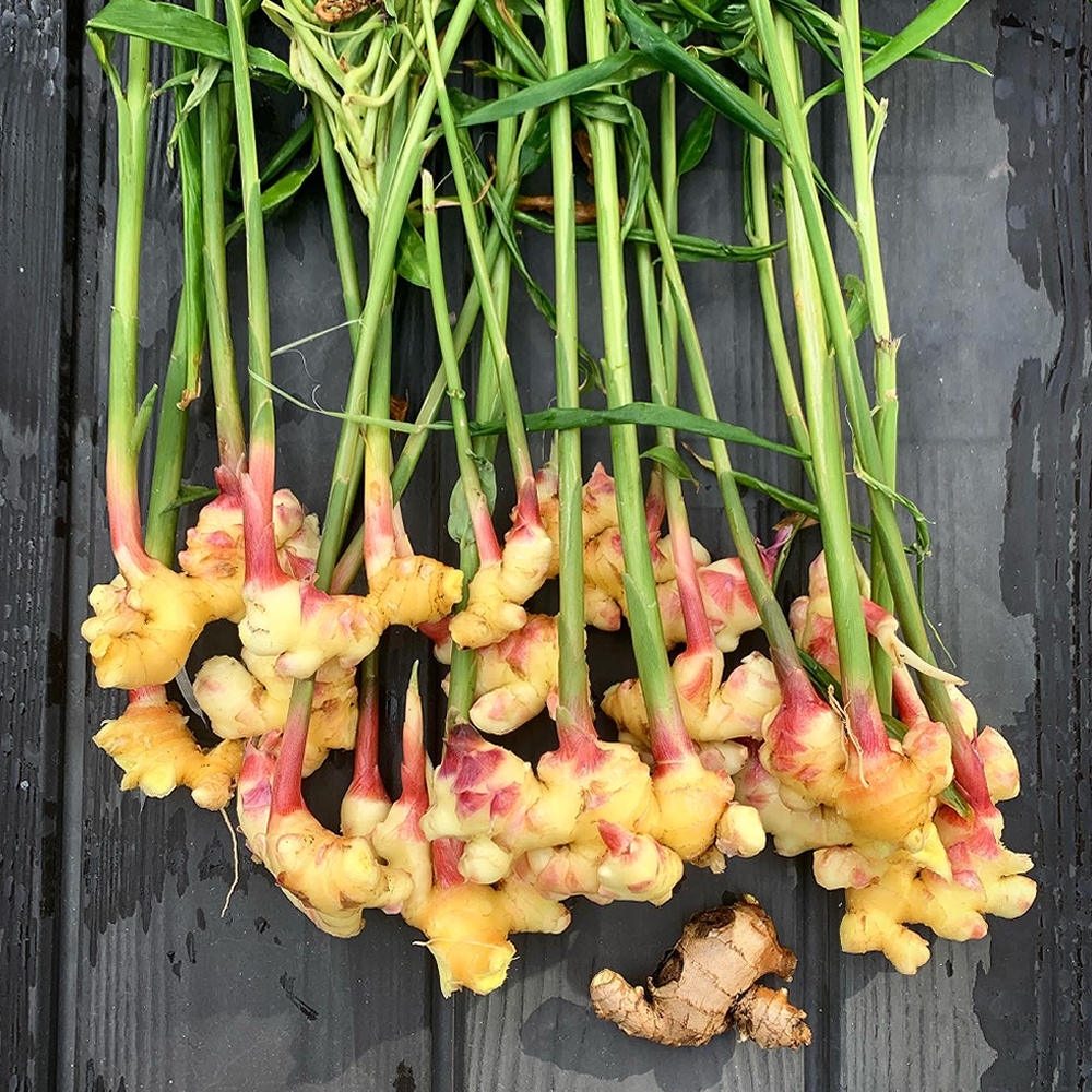 Grow fresh ginger! These tropical plants need full sun and regular watering to produce a crop of fresh ginger by the end of the summer. We recommend growing them in good potting soil (pots 12-14 inch across are ideal) and harvesting just before the first frost.